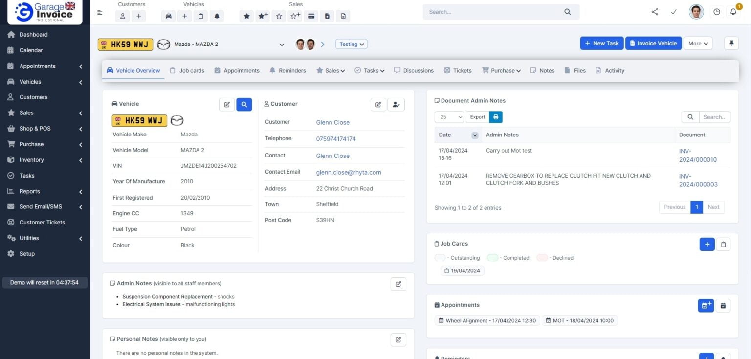 Keep essential documents centralized for maximum convenience, including job cards, sales records, appointments, and reminders.